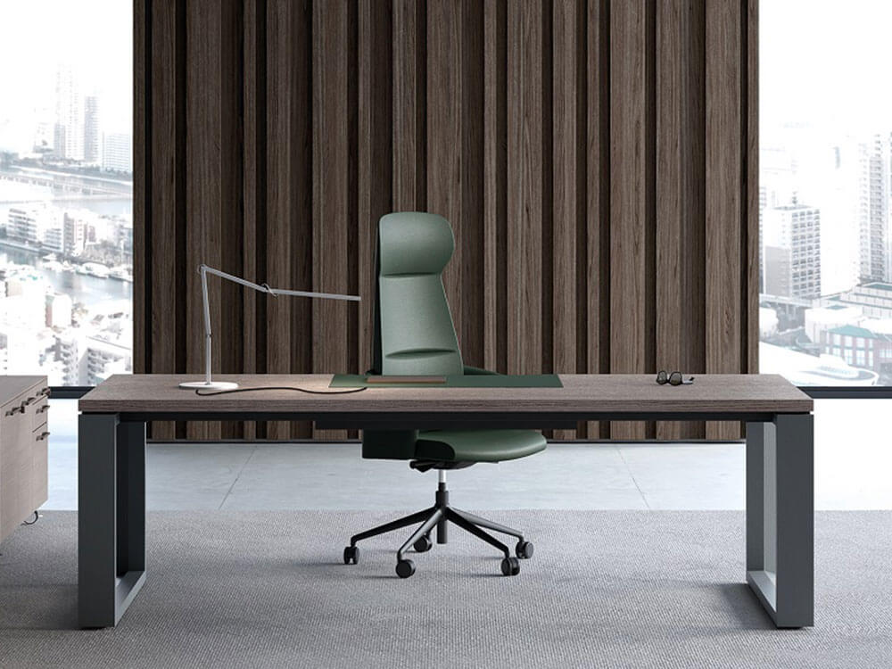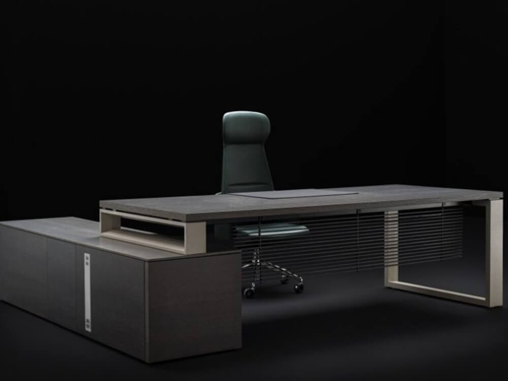 Adrien is an Italian-designed modern executive desk made from a 38 mm-thick veneer top. A mix of tradition and modernity, with its timeless ring legs, this desk is a great choice for managers to give their office even more value. Attach a credenza unit to create more workspace and arrange your cables through a variety of cable management options.