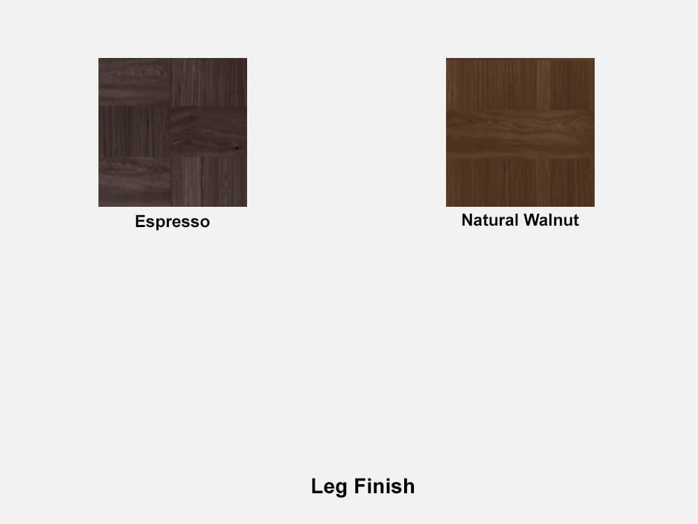 • Leg Finish: Espresso, Natural Walnut.
