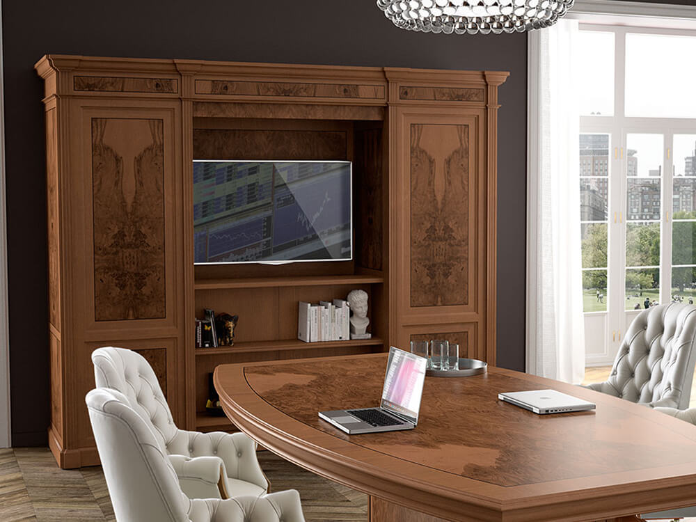 • In the Centre, a module with a lifting motor can show or hide a television that does not exceed dimensions 1120 x 775 mm.