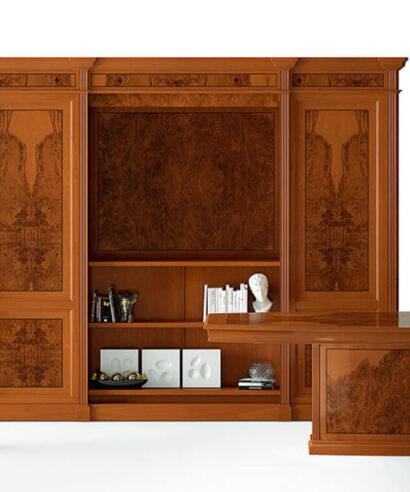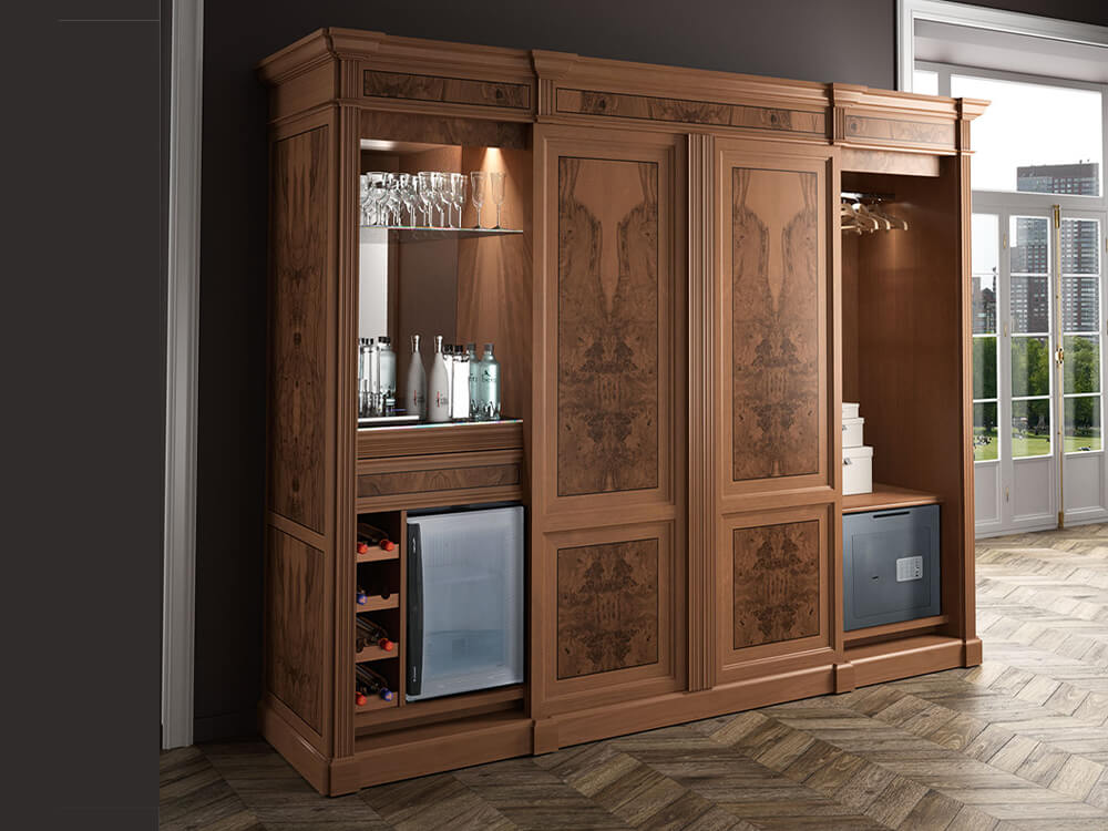 • Shelves: The interior shelves are adjustable in height and are made with 22 mm thick 620 kg/m3 MDP fibre board with solid beech wood moulding and 0.5 mm natural cherry veneer