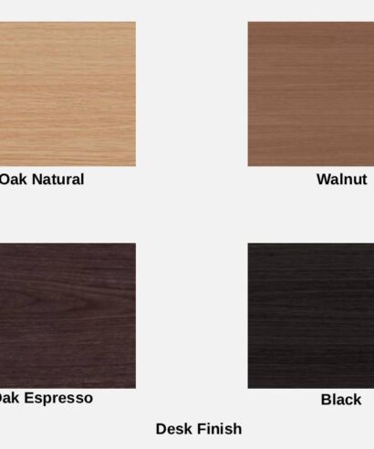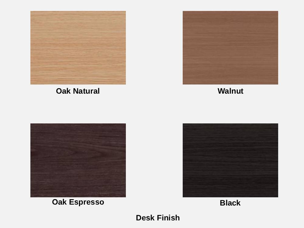 - Wood Desk Finish: Oak Natural, Walnut, Oak Espresso, Black.
