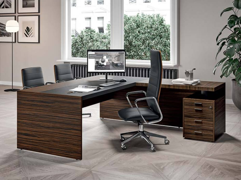 Einya – Wood Veneer Executive Desk with Optional Return and Leather Insert