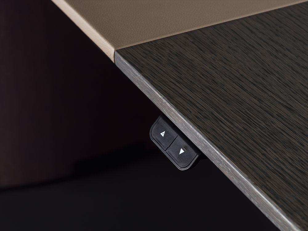 - Desk/Leg Finish: Black Lacquered Oak, Tobacco Oak, Carbon Oak, Dark Grey Oak, Grey Oak, Natural Oak, White Lacquered Oak.