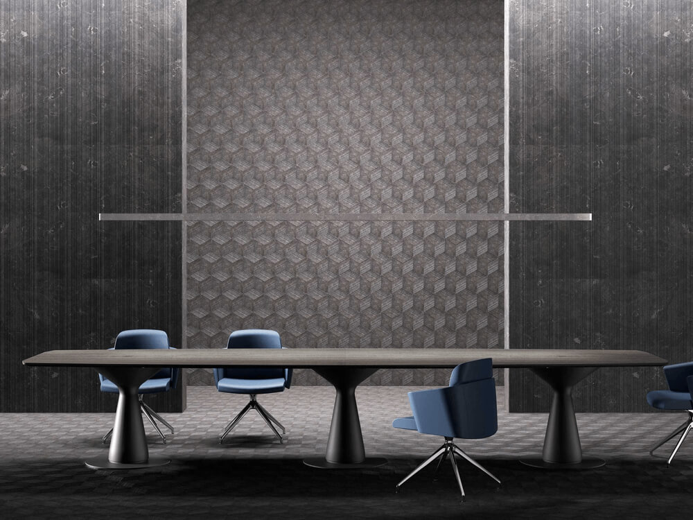 The Myra 2 Barrel Shaped Meeting Table is a premium Italian design with a 30 mm wood veneer top and a striking steel cone base. Available in multiple finishes with integrated cable management. Ideal for offices and professional environments, its barrel shape fosters collaboration, making it the perfect choice for executive boardrooms and conference spaces.