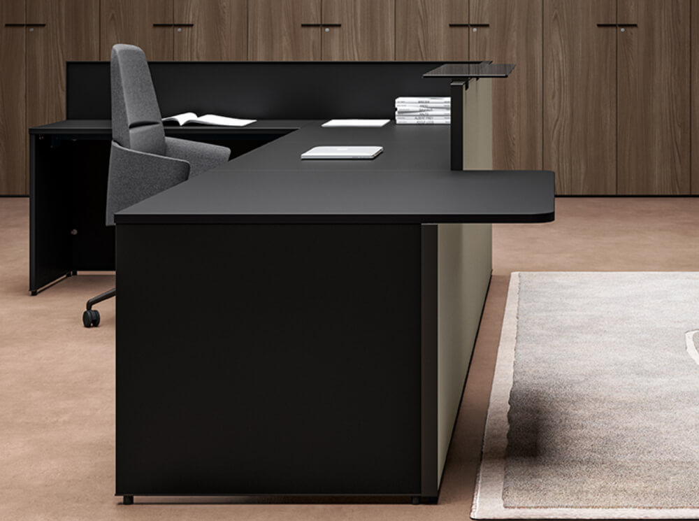 Your reception area is your company’s business card: it showcases your business’s identity and values a look of great exclusivity to entrances and reception areas. Our reception desks are designed to perform different functions: registering visitors, directing them to staff members, and providing information, all with first-rate ergonomics to make tasks easier. You can choose from a range of finish combinations, shapes and functionalities of your reception desk to best serve the needs of any type of business. Design, materials and aesthetic solutions combine to create a strong identity and impeccable style. Attention to detail is what makes the difference, ensuring every composition is both stylish, exclusive and functional.