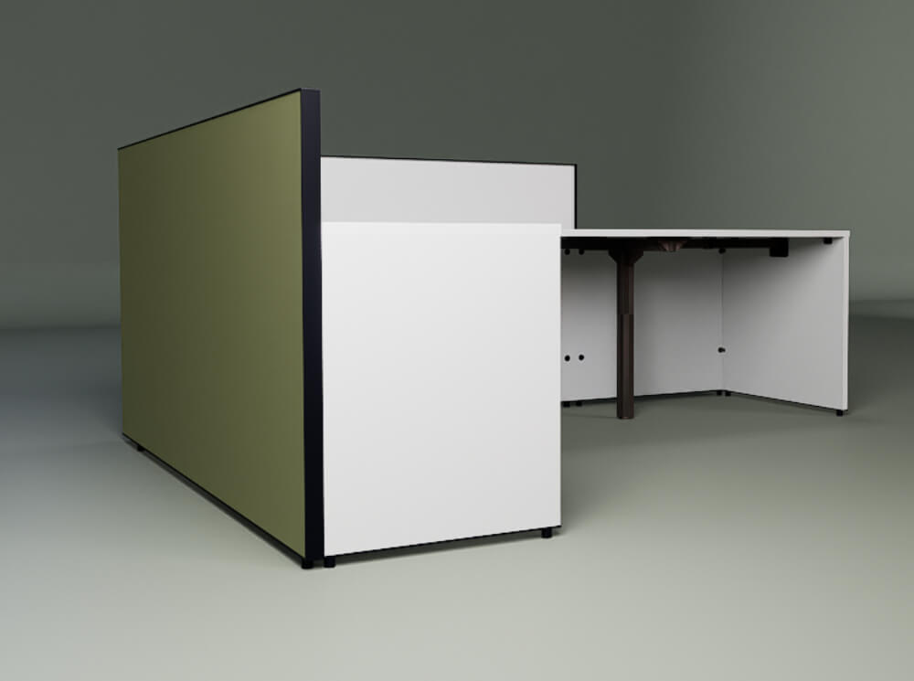 • The intermediate leg is made of epoxy powder-painted metal with a 50×50 mm section and 2 mm thickness, equipped with a foot that allows adjustment of 1 cm. Optional cable management.