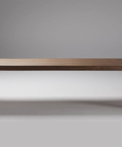 - Worktop: The worktop is made of 675 kg/m³ MDF fibreboard, 20 mm thick, at an angle of 90°, and 80 mm thick honeycomb board veneered with striped natural American walnut veneer, providing continuity to the short side.
