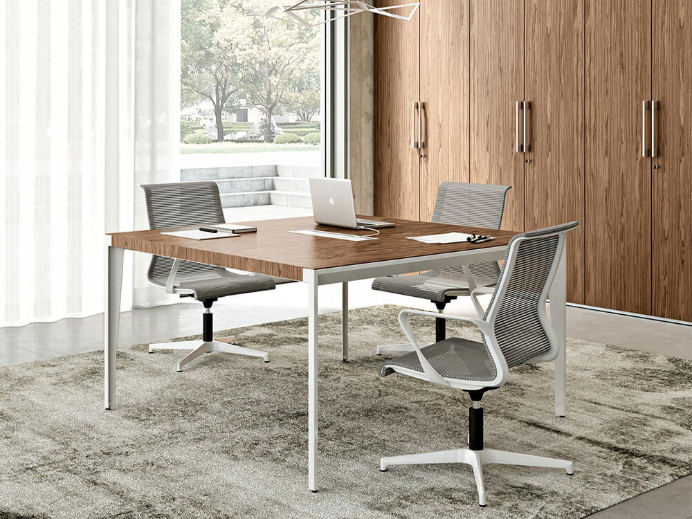 Xandy 1 – Square Shaped Meeting Table with Optional Leather Inlay