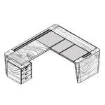- Return With Pedestal: 3-drawer + 1-pen drawer static pedestal made of 18mm veneered particle board. Matt transparent semi-open pore varnished 0.6mm wood veneer, 1mm thick wood veneer edges, 0.5 mm radius corners. Epoxy powder-coated metal drawers in silver, central locking with two folding keys, full extension metal slides with safety stop mechanism, and anti-slam soft close. 80% Extension pen drawer.
