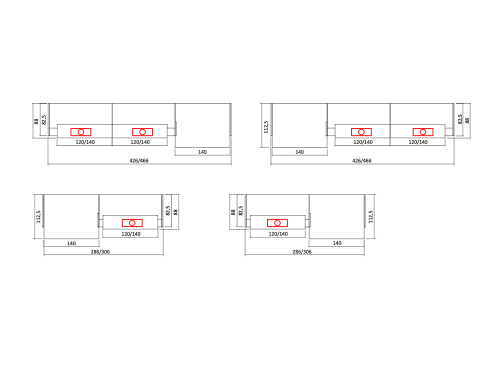 - Lacquered Overhang Panel Finish: White, Grey, Shadow Grey, Orange, Grey white, Telegrey, Silk Grey, Beige, Beige Grey, Golden Yellow, Flame Red, Purple red, Sapphire Blue, Pigeon Blue, Traffic Black.