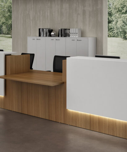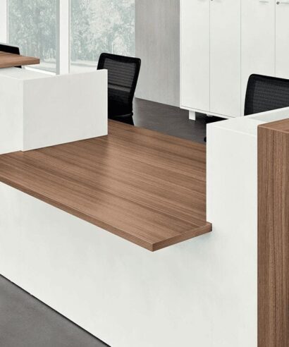 This large, modular reception desk is super functional, but that doesn’t mean you have to skip out on style. With Zack 5, a variety of aspects are finely combined, such as elegant finishes and high-quality designs. If you like this reception desk with a high and low counter, but need it in a smaller size, call us to discuss options. This straight reception desk is perfectly suited to show confidence to your visitors. The clever balance between a reception desk with a middle DDA access and high units enables you to take care of everyone and understand them with finishes from White Gloss to Canaletto Walnut.